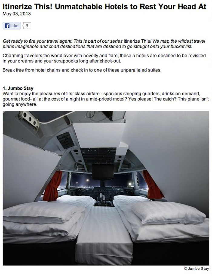 10 Jun, 2013 Wacky Hotels Article Snippet 10 Jun, 2013 Leave a Reply Cancel replyYour email address will not be published.Name * Email * Website Save my name, email, and website in this browser for the next time I comment. Δ
